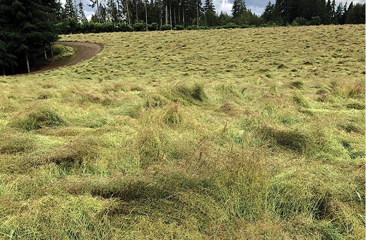 Un campo de producción de bentgrass. Si se deja sin manejo, el pasto crecerá sin barreras y será más valioso para el ganado, que para las personas.