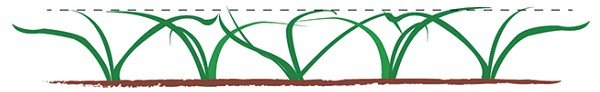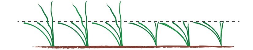 ¿Por qué así? A menos que sea Carl Spackler, quien piensa como un topo, usted necesita pensar como las plantas. El pequeño cerebro imaginario dentro de la planta, piensa que sus hojas son colectoras biológicas de luz solar. Como un panel solar en su casa, la hoja es más eficiente cuando está en posición diagonal u horizontal, no vertical. En este ejemplo, las plantas han logrado un equilibrio con la altura del corte (entre otros factores), donde la densidad de plantas y la configuración de sus hojas, es estable. Si cambiamos la altura de corte o algún otro factor, el equilibrio se ajustará a las nuevas condiciones.