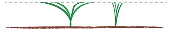 Yendo más a fondo, una longitud de hoja más corta no solo hace la textura del césped más suave, sino que afina la textura de la planta de forma individual en general. En otras palabras, reducir la longitud de la hoja resulta en plantas miniatura, comparadas con las no cepilladas (Figura 5). Esto es lo que hace que la planta sea más resistente al “scalping”, porque las coronas están más cerca de la superficie del suelo.