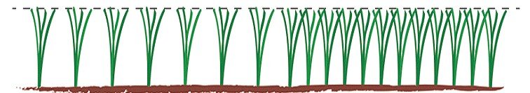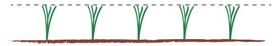 Lo que vemos en la imagen, es una comunidad de plantas que se ha ajustado a la altura de corte, impuesto por el operador con una segadora. Las plantas tienen relativamente poca densidad, pero un dosel amplio, como un paraguas. Las hojas tienen orientaciones diagonales y horizontales.
