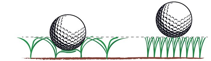 Esto es de particular importancia en superficies de putt. Especialmente, cuando a la bola se le acaba su energía cinética, la deflexión lateral puede provocar que la bola pierda su línea. Que Dios bendiga al superintendente en el último día del torneo, transmitido por televisión, cuando la bola del líder se desvía seis pulgadas antes del hoyo del green 18. A menor deflexión lateral, mejor rodado de la bola sobre el green.